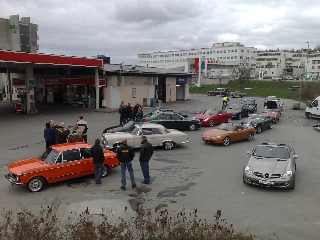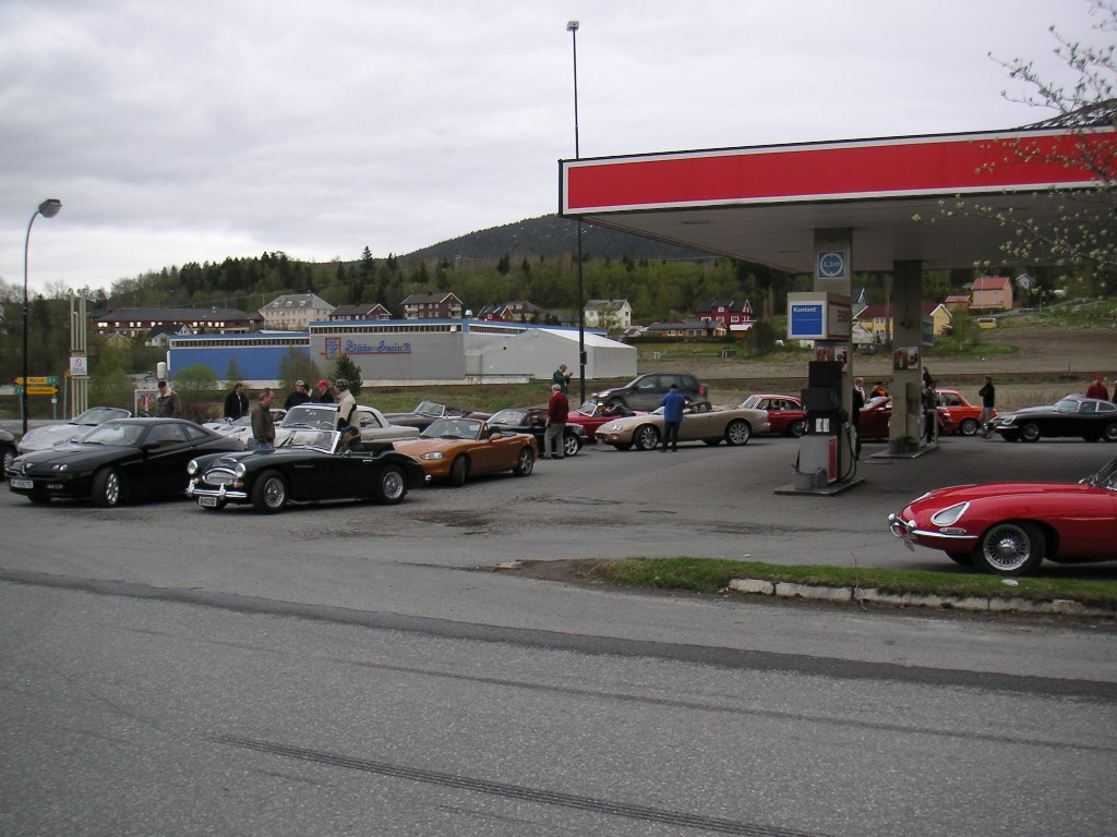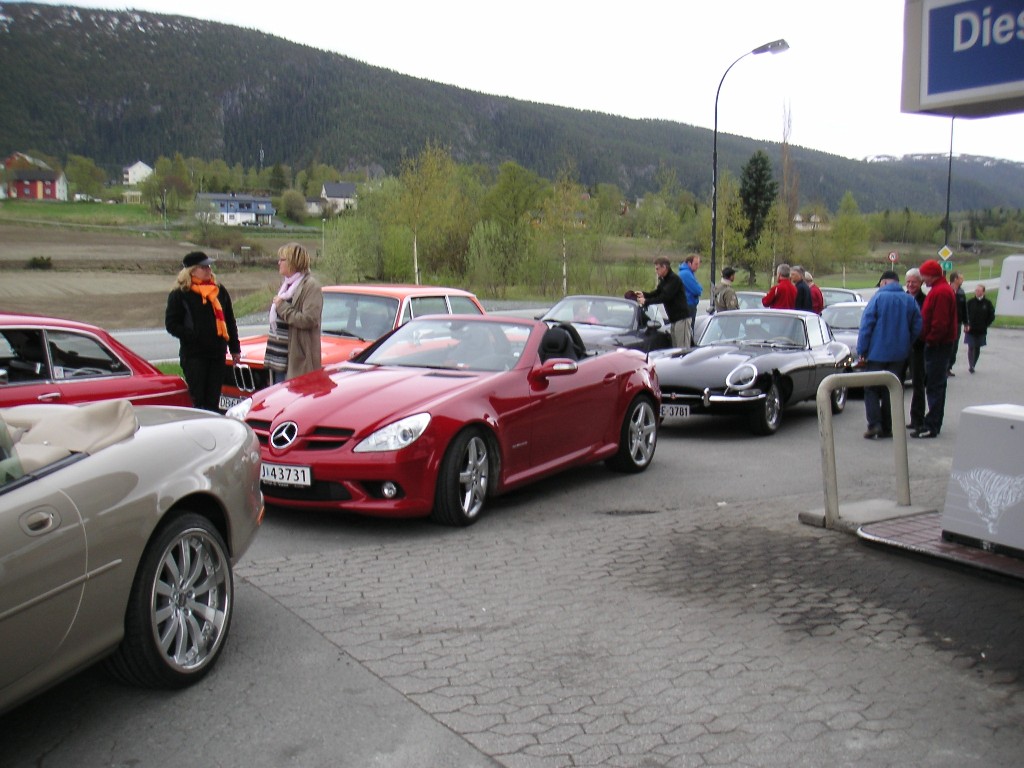 Normalt trøndersk vær, 12 grader, overskyet og kanskje ikke det mest fristende for en kjøretur på totalt 15 mil. MEN, hva skjer? Jo, hele 26 biler og 40 personer stilte til start. Det er på nytt rekord i oppslutning på et utemøte!!!!! Turen gikk nordover på gamle E6, svingete og fine sportsbilveger innover til Åsen, hvor vi hadde en oppsamling.
