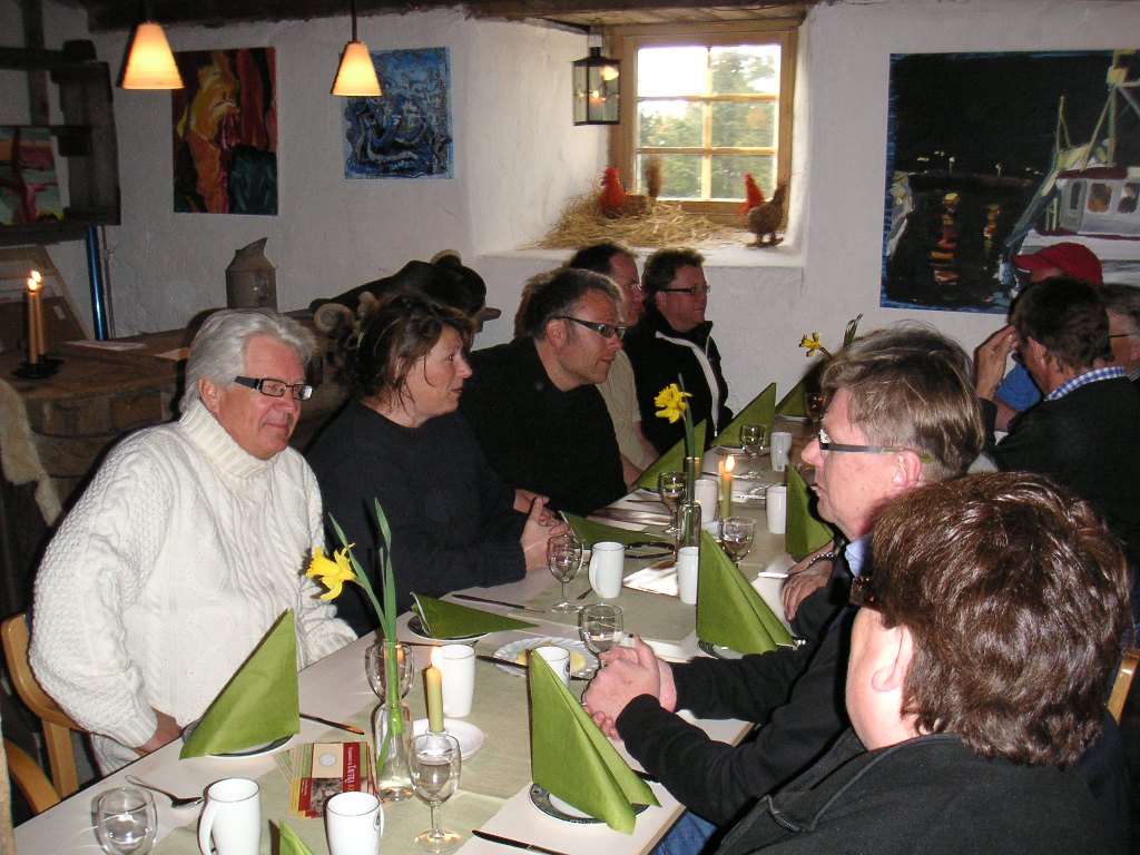 Derfra gikk turen på enda flottere veger ut til trøndelags kjøkkenhage, Frosta, og over den 2 km lange moloen ut til klosterøya Tautra. På Klostergården fikk vi servert trøndersk gourmet-mat — tangsuppe med urtebrød og kaffe. Både det gamle og det nye klosteret (til kr. 40 mill.) ble besiktiget. En bil fikk problemer, så klubbens Safety Car kom til nytte.