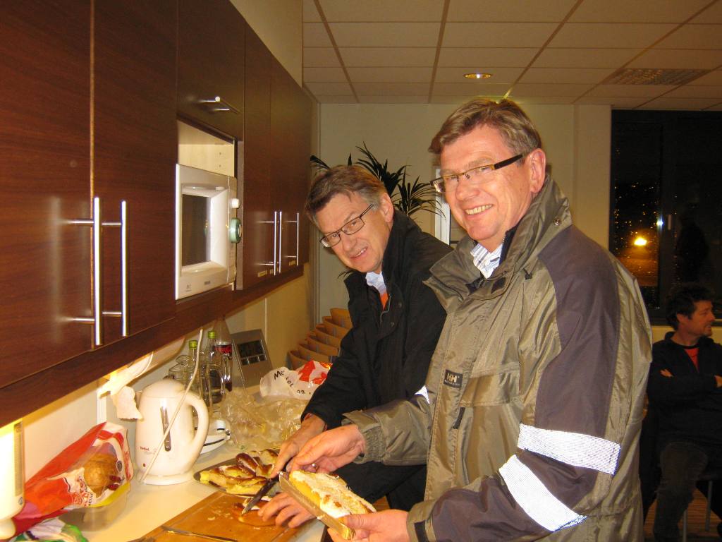 Deretter gikk vi opp til det flotte fellesarealet i 3.etasje der det var klart for servering av kaffe og et rikholdig utvalg kaker servert av klubbens superkokker, Oddvar og Asbjørn. Imens fikk vi en grundig orientering om hvordan opplæringen av førere på tunge kjøretøyer foregår. Dette er tydeligvis et tema om engasjerer mange medlemmer, og de mange spørsmålene som kom ble besvart til fulle av den rutinerte lederen for kjøreskolen for tunge kjøretøyer ved Ole Vig v.g. skole.