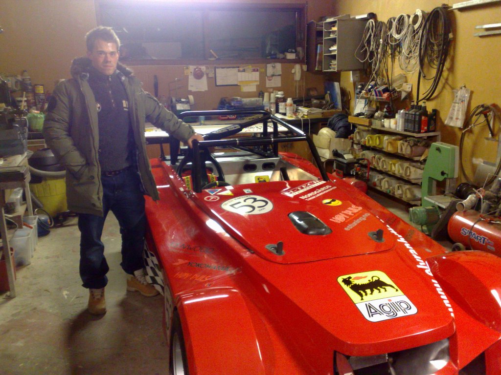 Mot slutten av møtet fikk vi også høre et interessant innlegg fra en av de andre besøkende, Vegard Skjærvik Mære, som kjører klassisk racing med en Mini Cooper på hobbybasis. Selvsagt var den samme bilen i bruk også som framkomstmiddel til møtet og kunne dermed beskues utenfor garasjen etterpå.