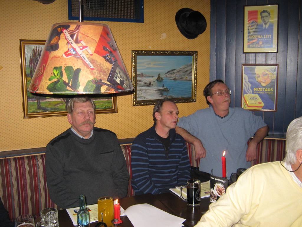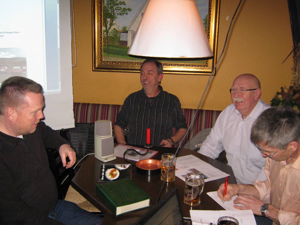 Etter flere filmsnutter og en overdådig pizza-servering fikk den avtroppende sekretæren (Eirik) overlevert en laurbærkrans laget av et bildekk med tilhørende diplom med fine ord. Vel fortjent etter en imponerende innsats for klubben i løpet av de siste 10 år. Den avtroppende formannen (Per Erik) fikk også ros for sin måte å lede styret på de siste 3 årene. Ryddige, planlagte møter og god oversikt.