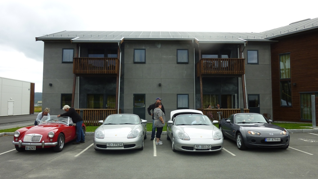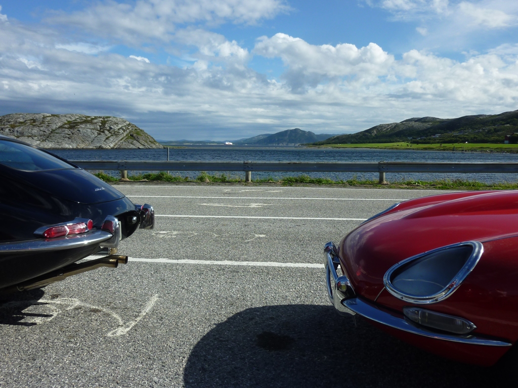 Dagens siste etappe gikk tilbake til Åfjord og Fosen Fjord Hotell på sen ettermiddag. Her fikk vi en respektabel mottakelse av en særdeles serviceinnstilt nordnorsk hotellsjef og 2 strategisk plasserte Jaguarer som vi fikk parkere ved siden av. Ved ankomst fikk vi servert kaffe og nystekte vafler.