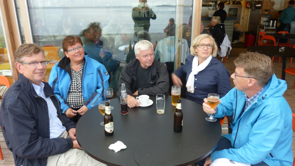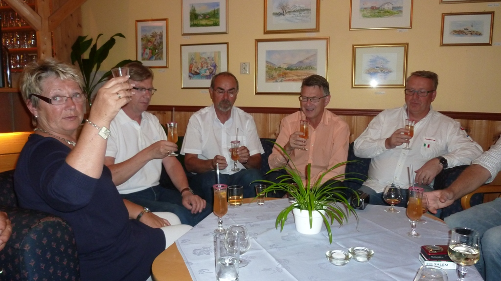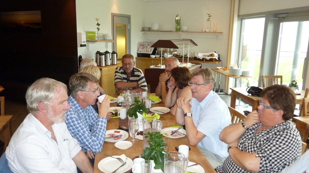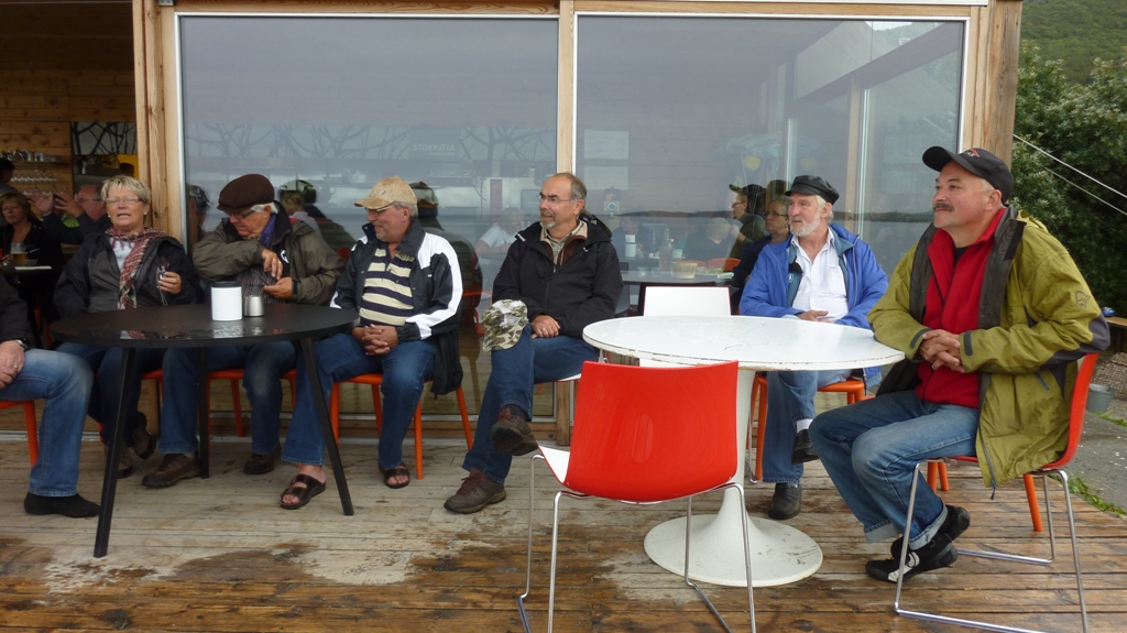 En kort kjøretur fra ferjeleiet på Brekstad til Austrått Fort. Der parkerte vi og gikk opp til trippelkanonen som naturlig nok ligger på en høyde med god utsikt utover fjorden. Et imponerende skue. Etterpå ble det enda en kort etappe til Fosenhallen i Botngård, der det tilfeldigvis var en såkalt ”ellevill loppisdag” som fristet enkelte medlemmer til en handel. Deretter var det tid for lunsj på Bjugin hotell i Botngård sentrum.