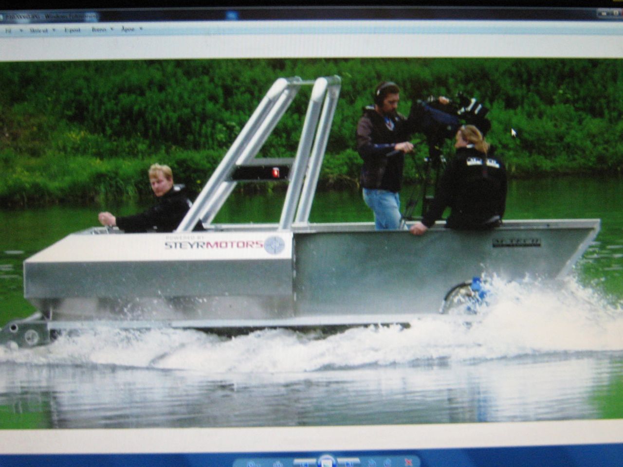 Det mest imponerende vi fikk se under møtet var nok de to brødrenes kreativitet og utvikling av egne ideer. Det store utviklingsproduktet de var opptatt av nå, var å fremstille en rednings-/servicebåt primært med tanke på olje- og miljøsektoren. Båten drives framover av to store skruer, som erstatter både propell og hjul. Primært er konseptet laget for å få trygg fremdrift i vann, islagt vann og over tykk is, altså i arktiske strøk. Mange store internasjonale selskaper er interessert i produktet, og har gått inn med midler for å få prosjektet fremover.