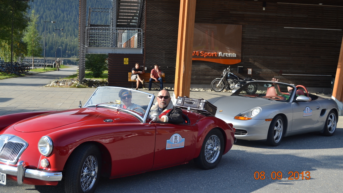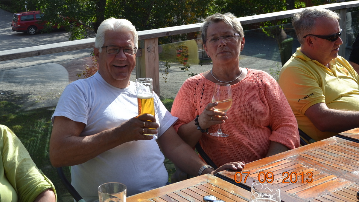 Temperaturen og været var som dagen før, da vi sjekket ut fra hotellet og fortsatte tilbake hjemover på flotte sportsbilveger og utrolig natur. Vi hadde opprinnelig planlagt å ta en stopp ved Tännforsen, men da førerbil med styremedlem og sekretær snakket for mye, glemte disse å se på vegskilt, og plutselig var vi i Norge.
