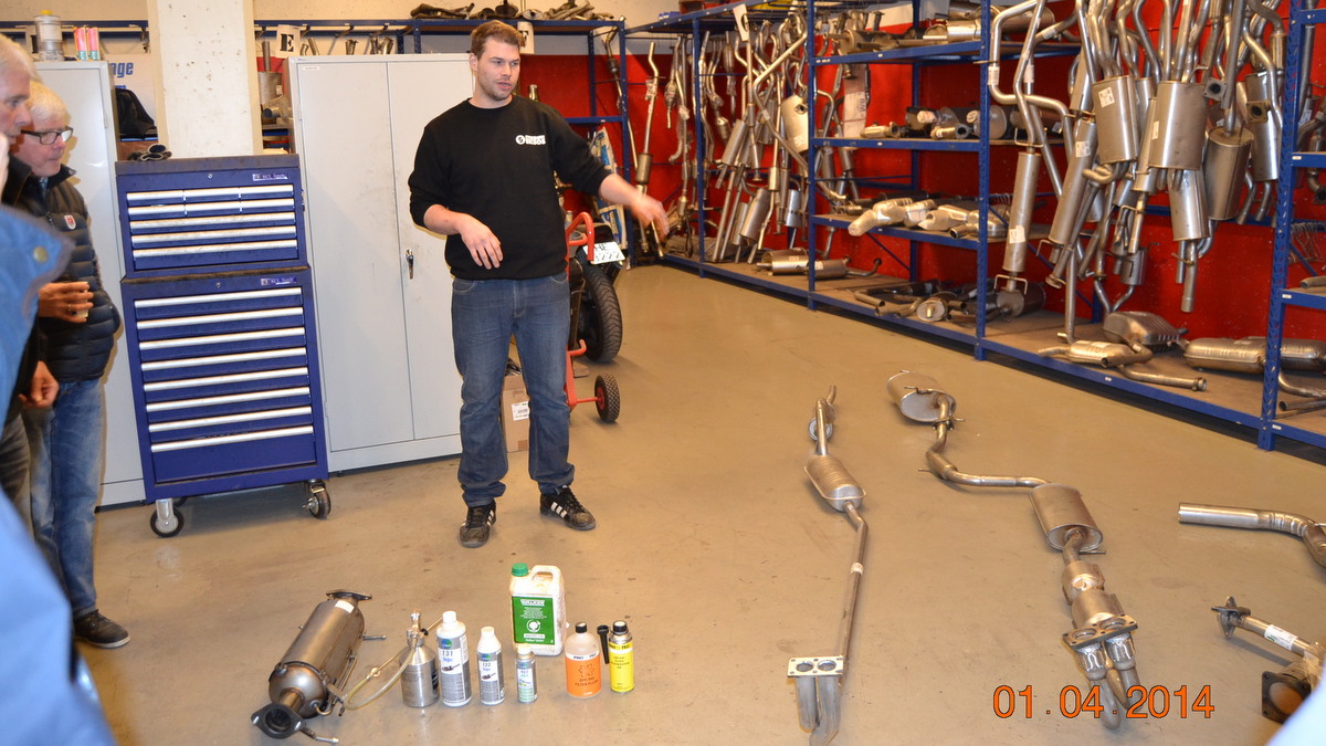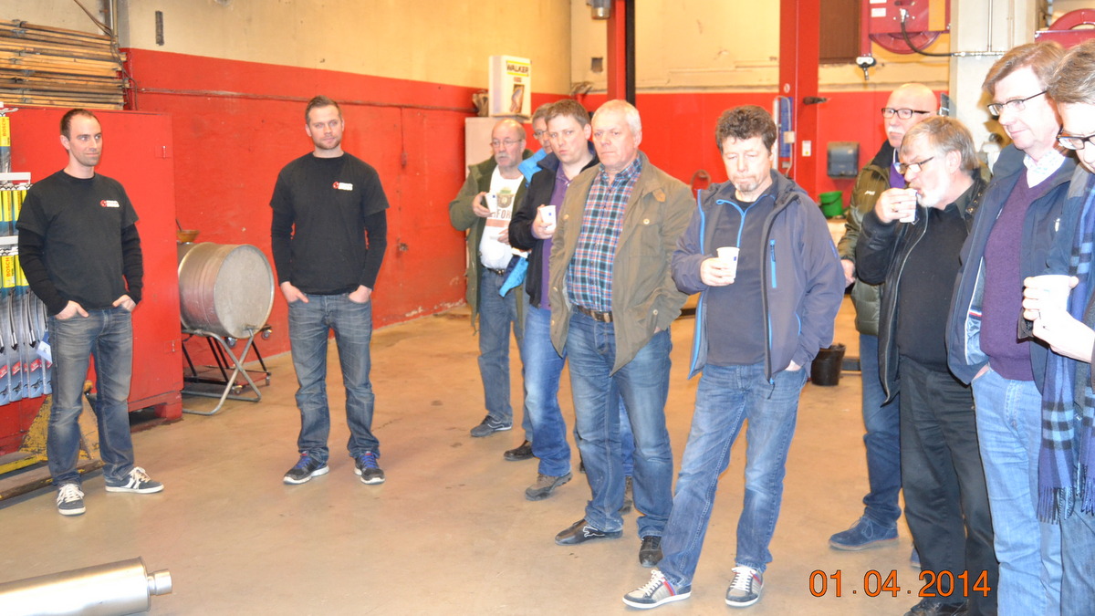 Aprilmøtet ble arrangert hos Svendsen Eksos. 17 medlemmer lot seg fascinere av alt som har skjedd siden siste møte hos samme firma, for 12-13 år siden. Den gangen snakket vi om sveising og spesialtilpasning av eksosanlegg, nå var det snakk om kompetanse på begrensning av utslipp ved hjelp av forskjellige nye teknikker og filterteknologi.