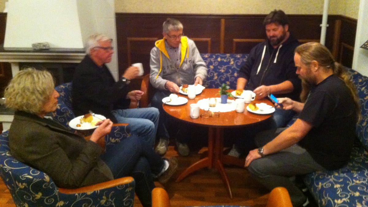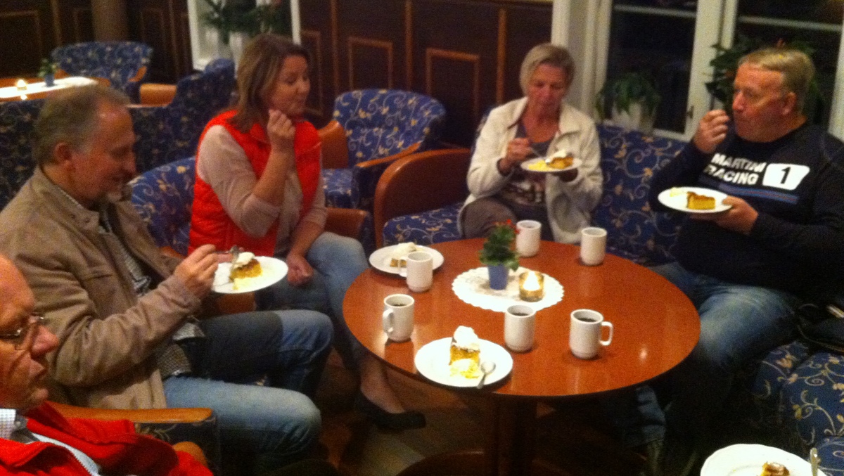 Vi fikk servert nydelig eplekake med både krem og is, samt kaffe, alt betalt av klubben.