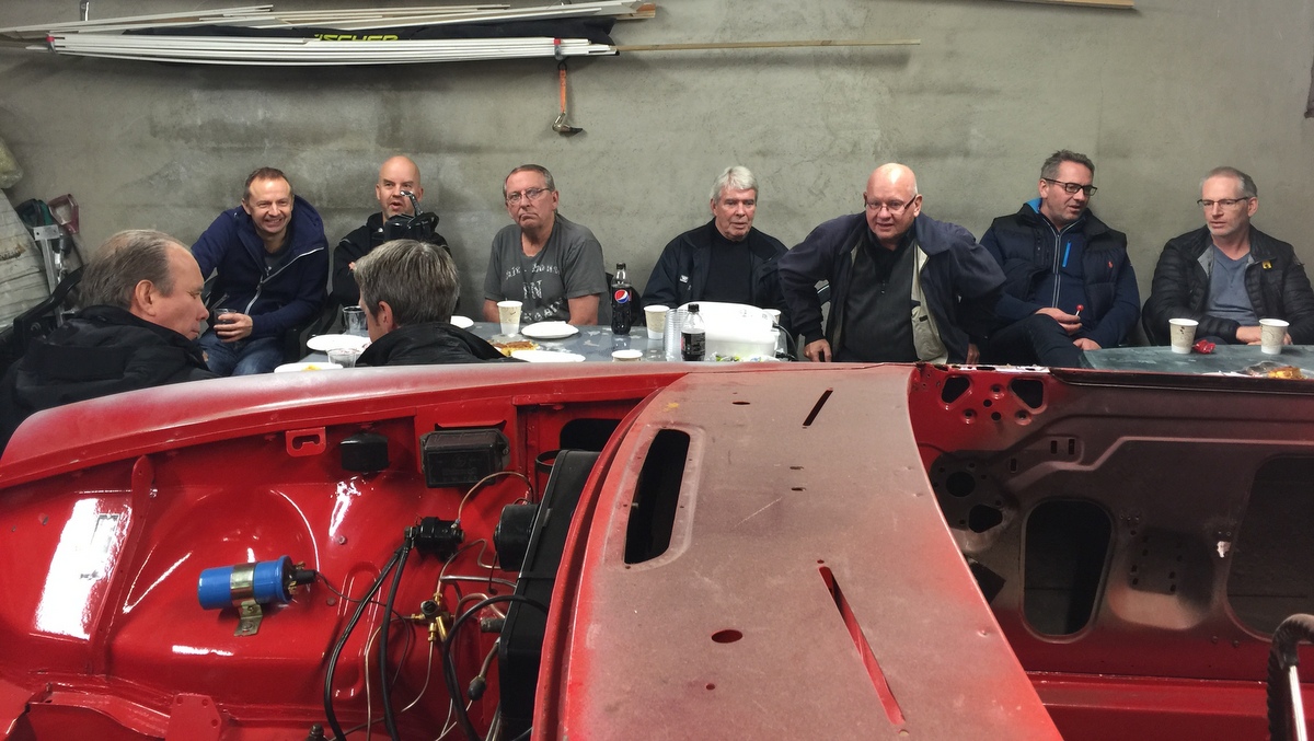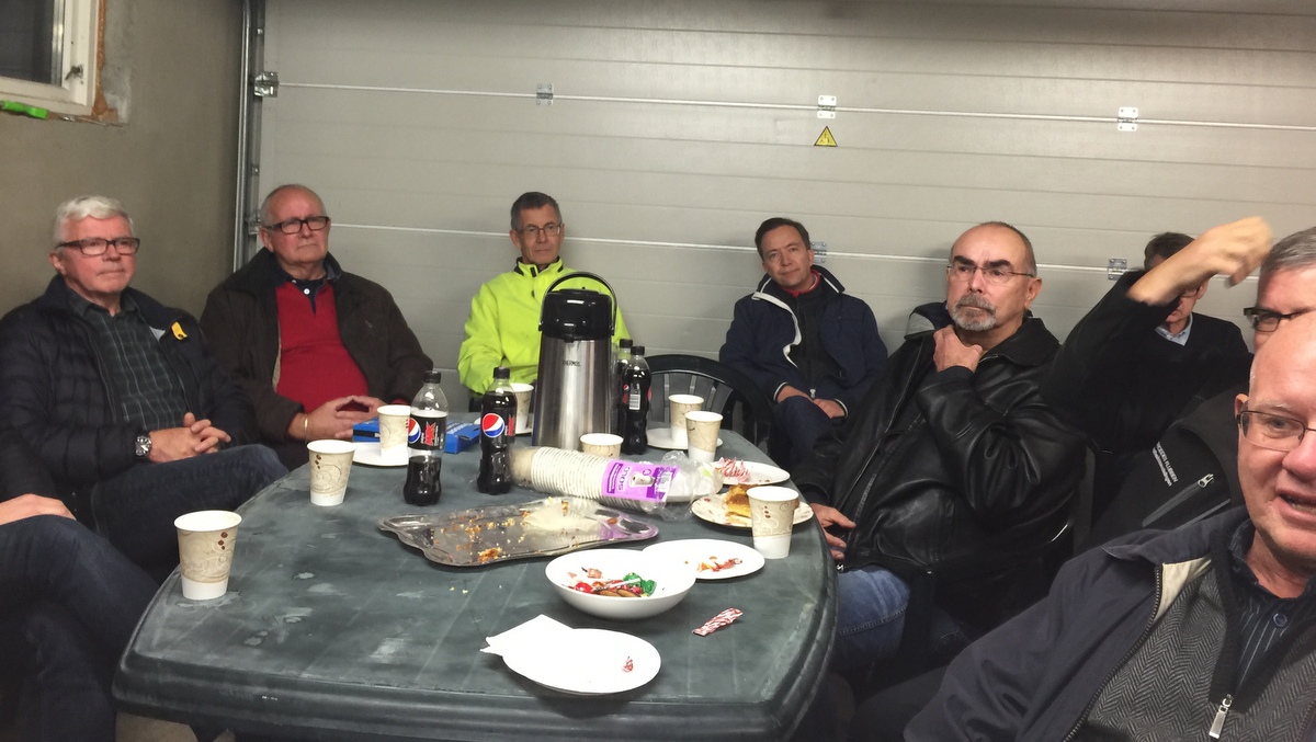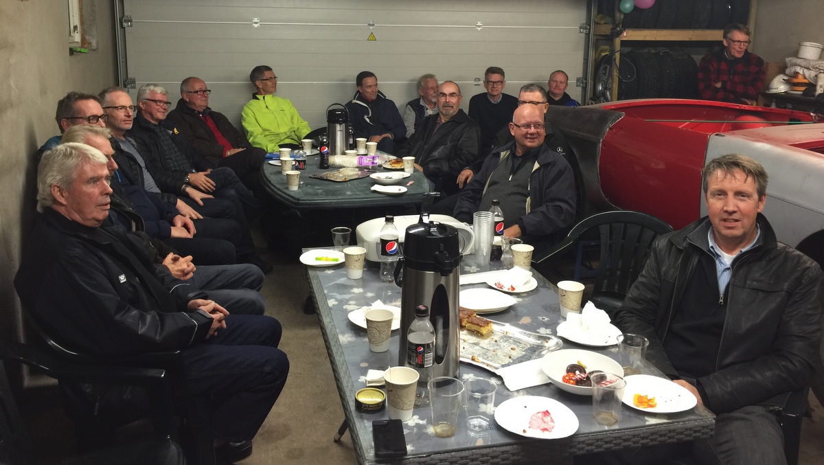 Heldigvis har Odd en romslig garasje, for oppmøtet var over all forventning, hele 25 medlemmer møtte opp, og