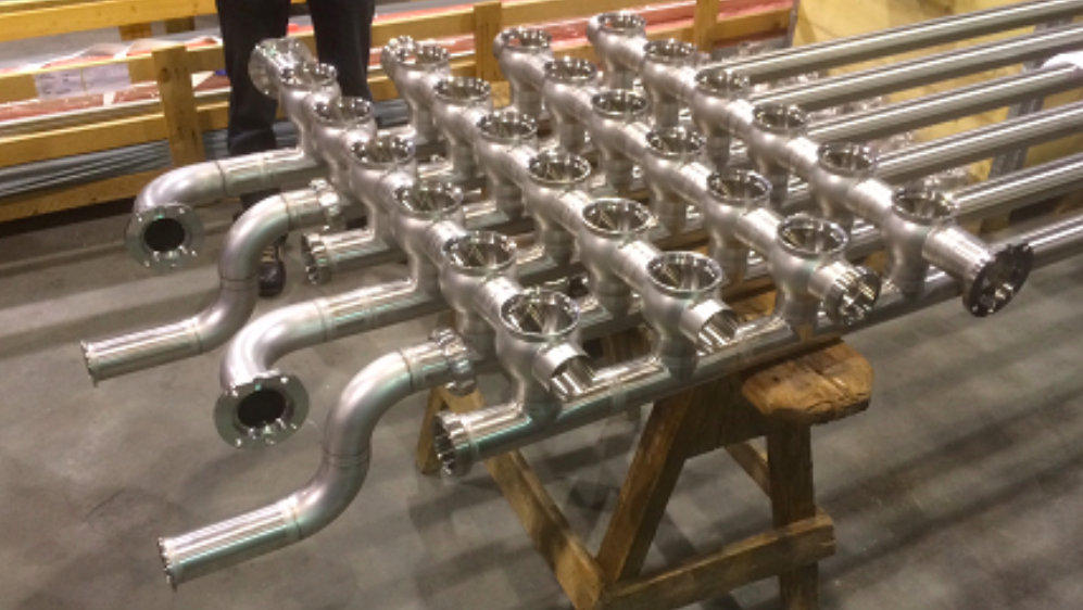 Prefabrikkert ventilbatteri for montering i et meieri.