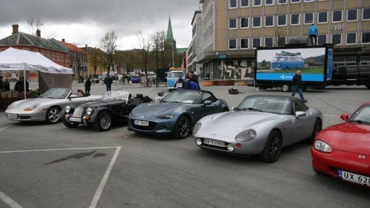 Oppmøte var på Esso Moholt, hvorfra de oppmøtte kjørte i kolonne ned til sentrum. Ca. 19 biler møtte opp til start kl. 10:00 lørdag morgen, og litt før kl. 10:30 var de fleste manøvrert på plass rundt Olav Tryggvason-statuen. En delegasjon fra MG-klubben og NSK hadde allerede satt opp flagg og bannere. Det var noe mindre oppmøte enn i fjor, noe langhelg med Pinse må ta skylden for.